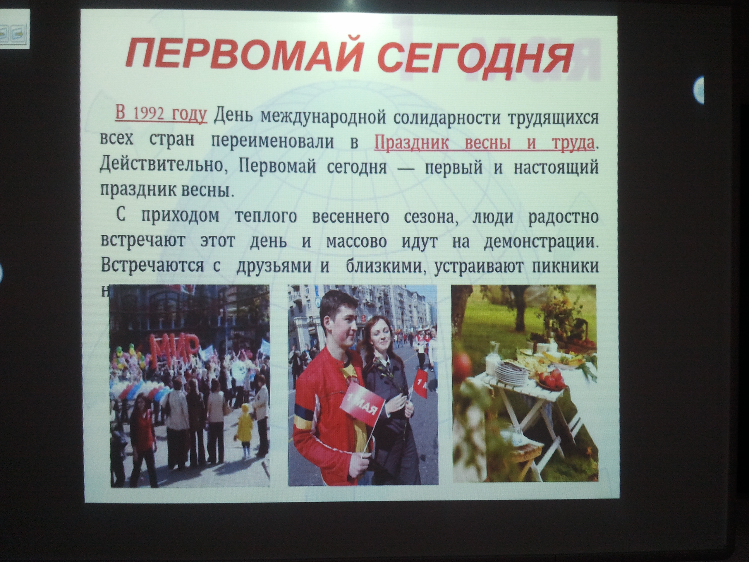 Отчет о проведенных мероприятиях, посвященных 1 мая