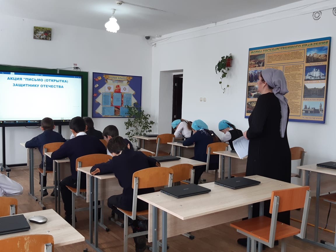 с 15 по 20 февраля 2021 года в МБОУ «Старогладовская СОШ» отрядом ВВПОД «ЮНАРМИЯ» проведена Акция «Письмо (открытка) защитнику Отечества».