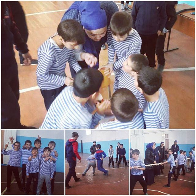 Все мальчики из третьих классов собрались в спортивном зале и разделились на команды «Моряки» и «Разведчики». Сначала мальчишки показали, как они умеют выполнять различные команды и повороты «Направо», «Налево», «Кругом», а потом соревновались в эстафетах на ловкость, смекалку, быстроту и точность.