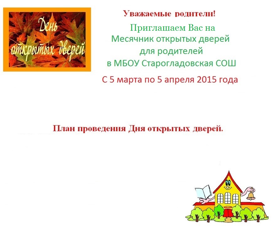 Месячник открытых дверей для родителей в МБОУ Старогладовская СОШ