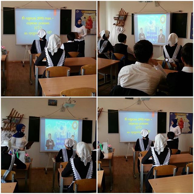 14.04.201714 апреля 2017 года кл. руководителем 10 класса Уцмиговой Л.Х. был проведен классный час, посвященный Дню отмены КТО в ЧР на тему «16 апреля – День мира в Чеченской Республике».