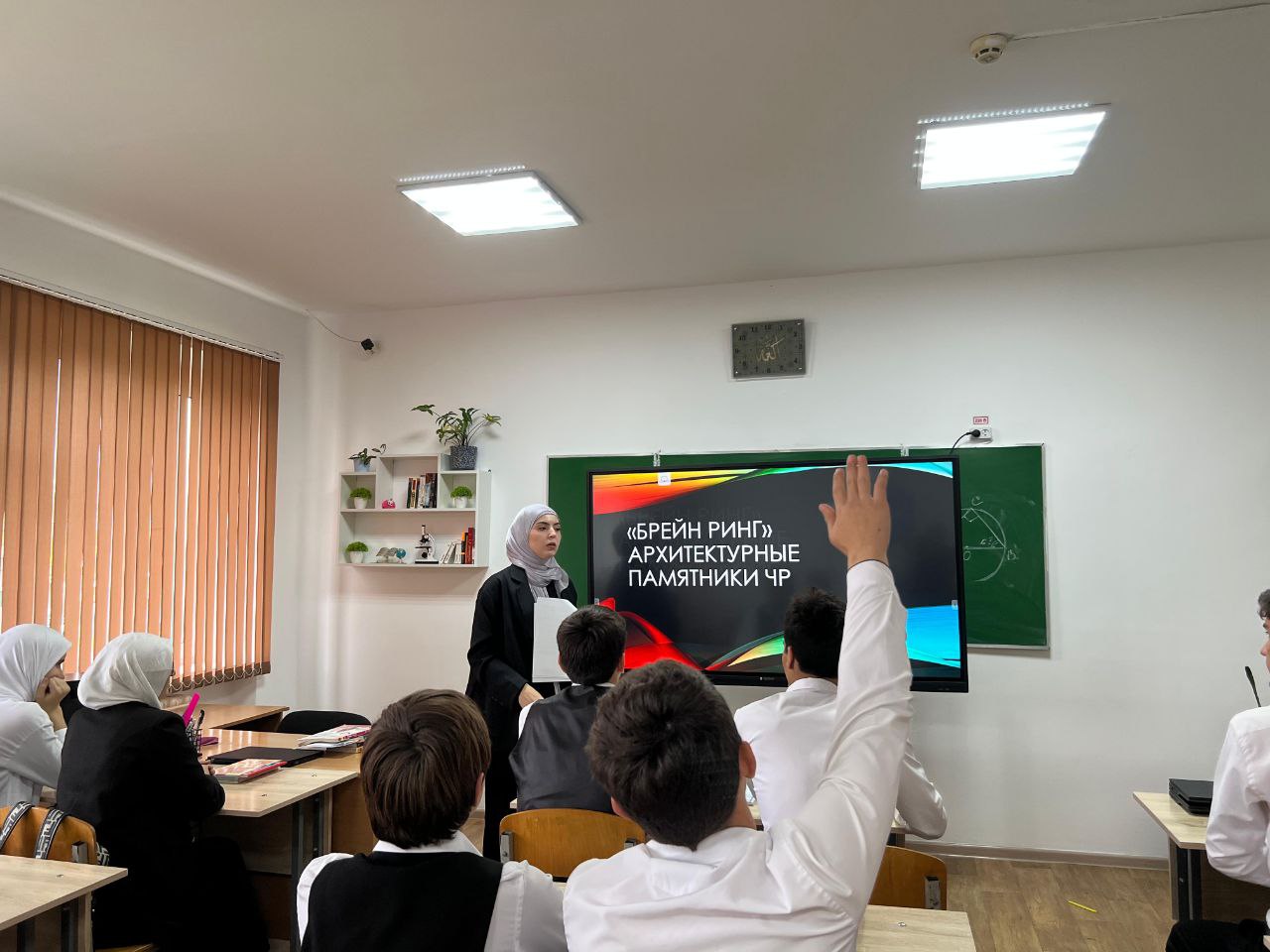 Уроки на тему: «История и культура Чеченской Республики», «Достопримечательности ЧР, а также игра «Брейн ринг» на знание архитектурных памятников ЧР