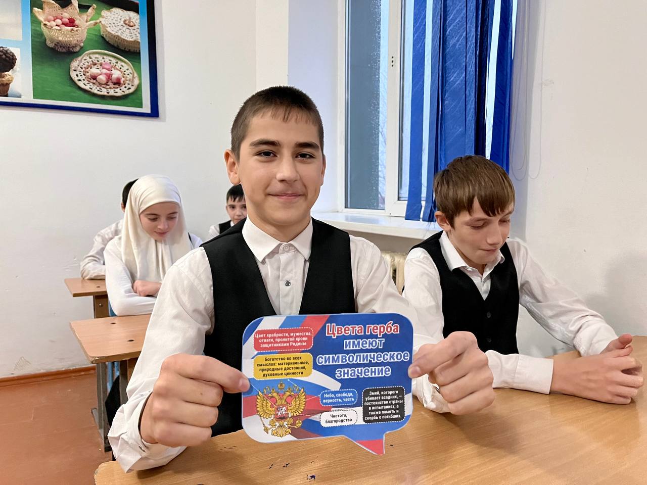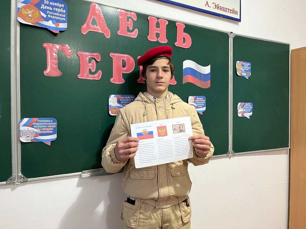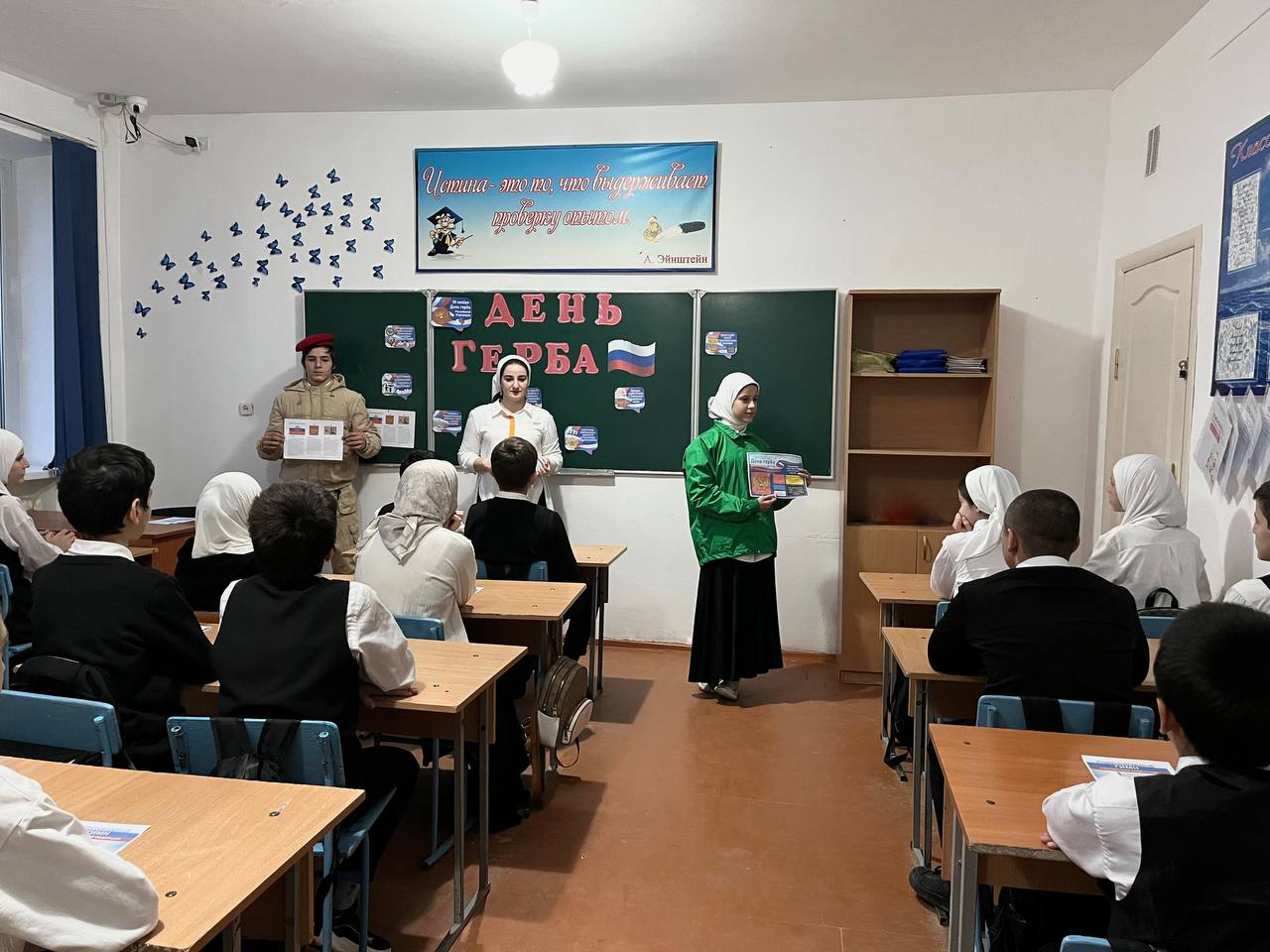 02.12.202428 ноября 2024 года в нашей школе активисты «ЮнАрмии» и ЧРОО ЕДЮО «Юные Кадыровцы» совместно с советником директора Майрхановой А.Д. провели мероприятие, приуроченное ко Дню герба Российской Федерации.