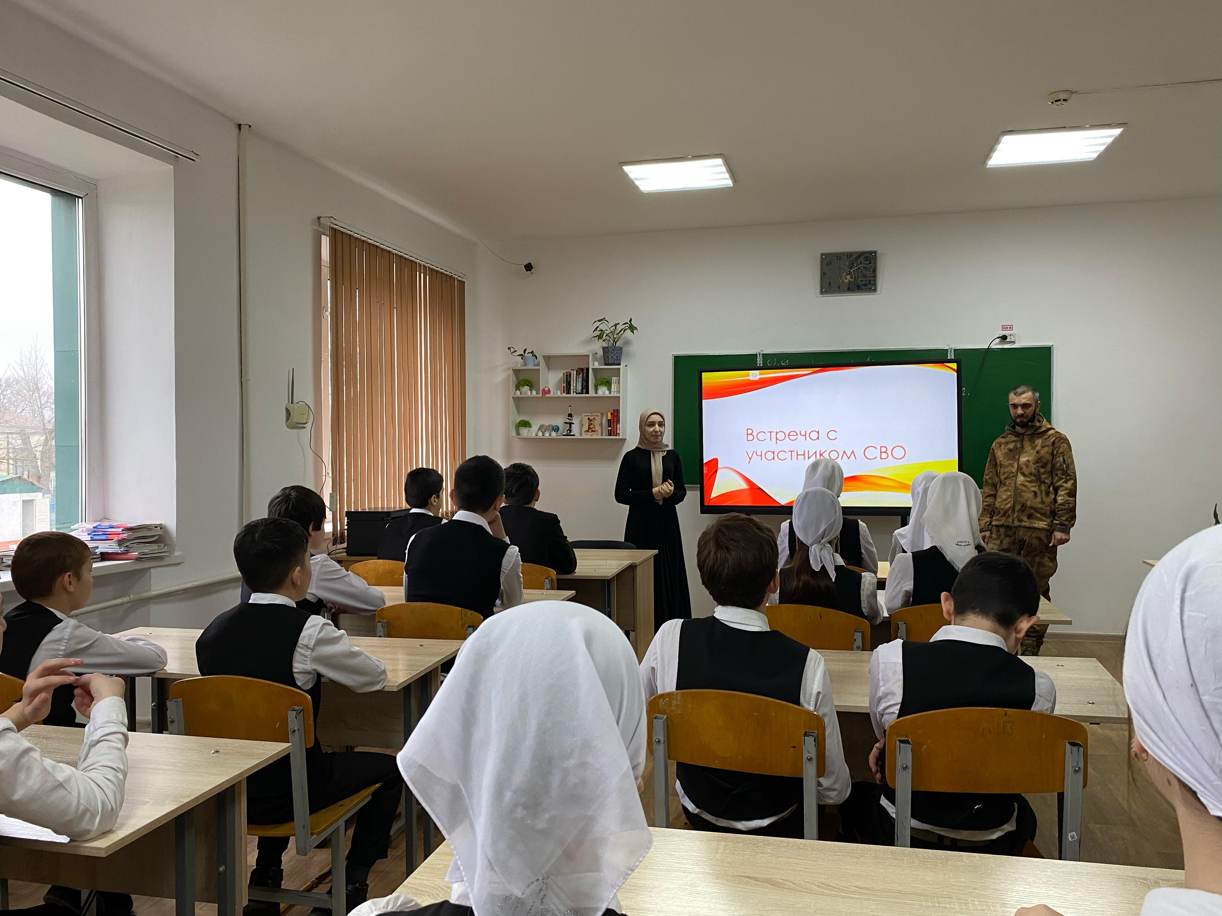 Встреча обучающихся 7-8 классов с участником СВО Арсамиковым Ибрагимом