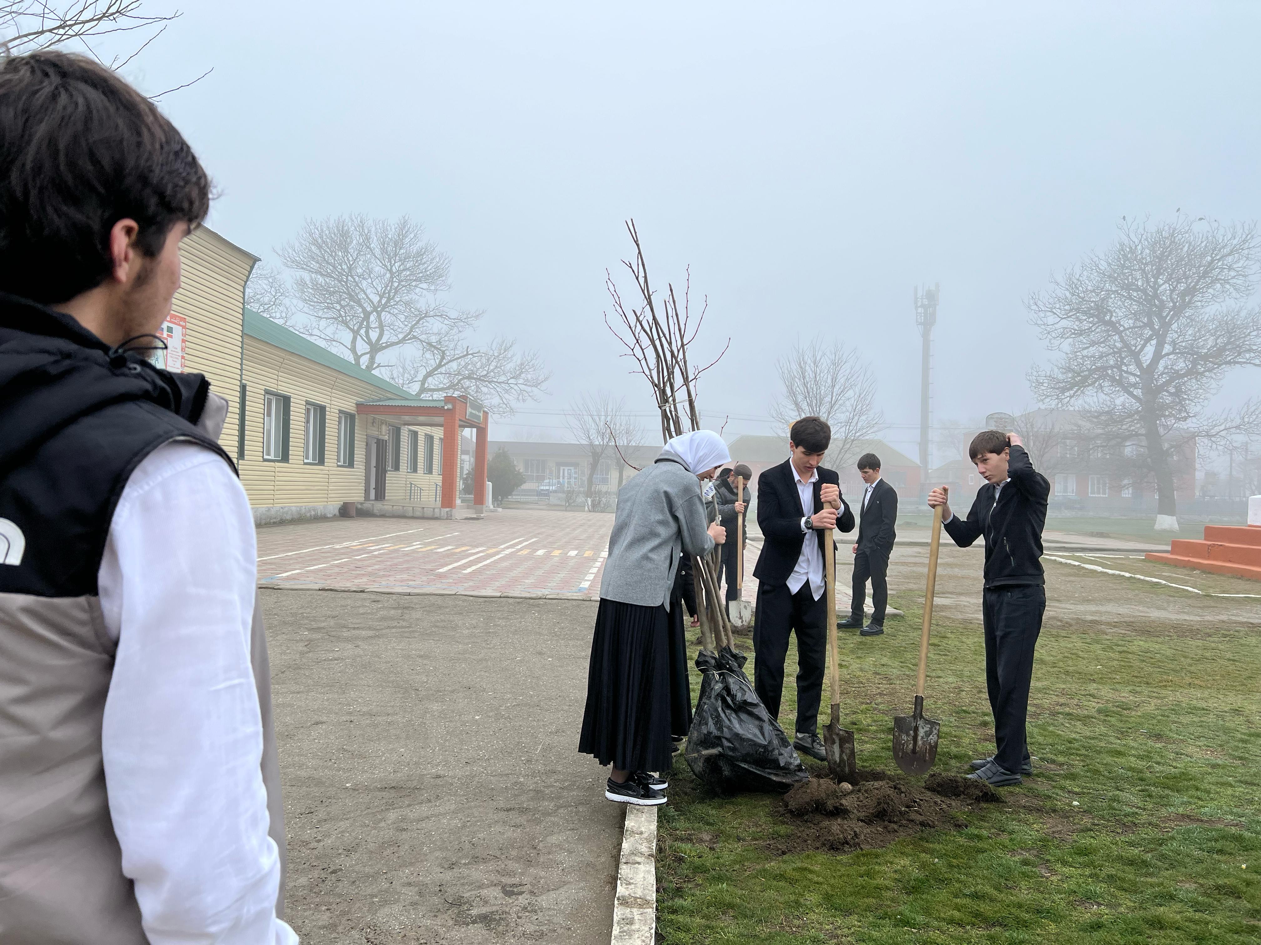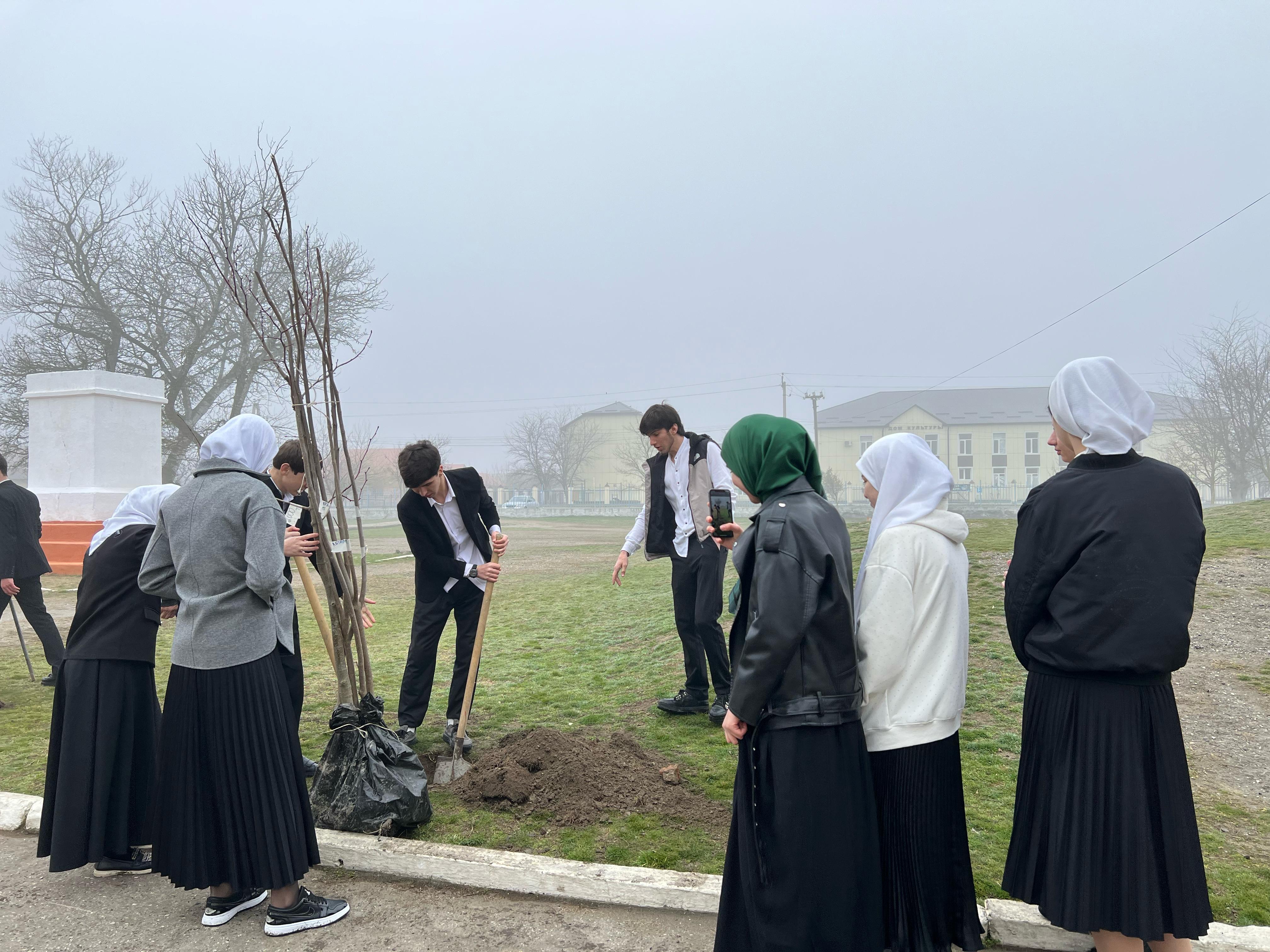 14.03.2025Акция по посадке деревьев в МБОУ «Старогладовская СОШ», состоявшаяся 14 марта, стала ярким и значимым событием для всей школьной общины. Педагог-организатор Абдулмуслимова Х.Б. провела мероприятие, в ходе которого учащиеся и преподаватели принимали активное участие в озеленении территории школы.
