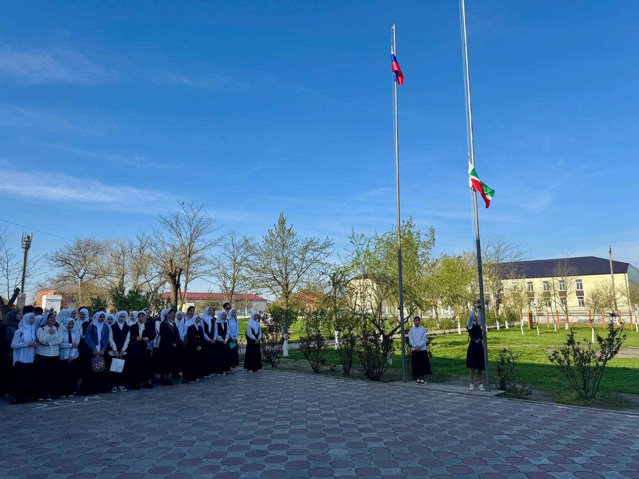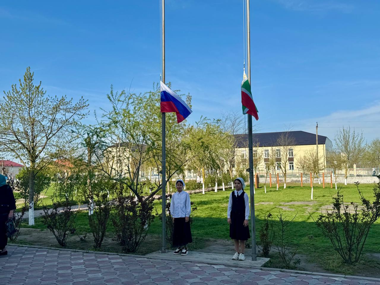 07.04.2025Сегодня утро в нашей школе началось с очередной церемонии поднятия флагов Российской Федерации 🇷🇺 и Чеченской Республики.