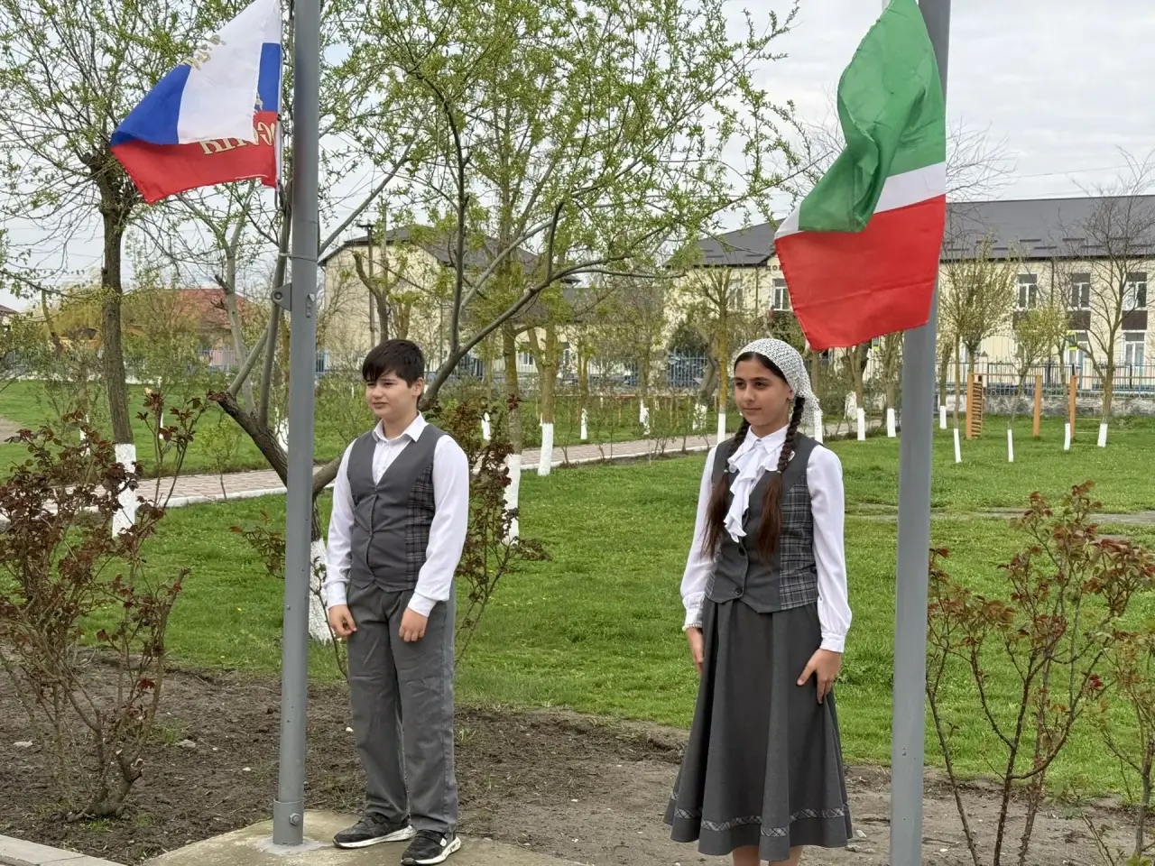 06.04.2026✔️ Утро понедельника 06 апреля 2026 года в нашей школе традиционно началось с торжественной линейки, церемонии поднятия флага Российской Федерации и Чеченской Республики.