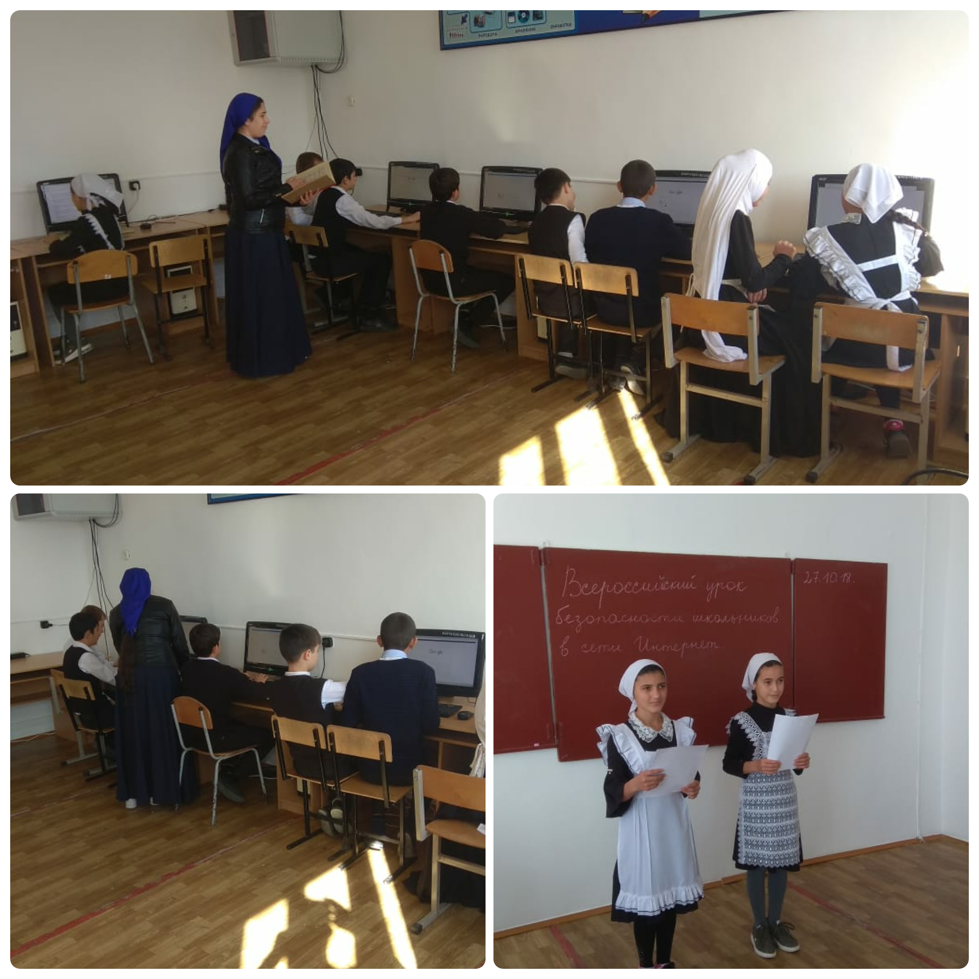 27 октября 2018 года обучающиеся 7 «а» класса МБОУ «Старогладовская СОШ» (25 человек) приняли участие во Всероссийском уроке "Безопасности школьников в сети Интернет». Урок был призван обеспечить дополнительное внимание к проблеме детской безопасности в Интернете и развитию информационной грамотности у школьников. Занятие провели учитель информатики Аюбова Т. М. и зам. директора по ИКТ Загибов А. Х.