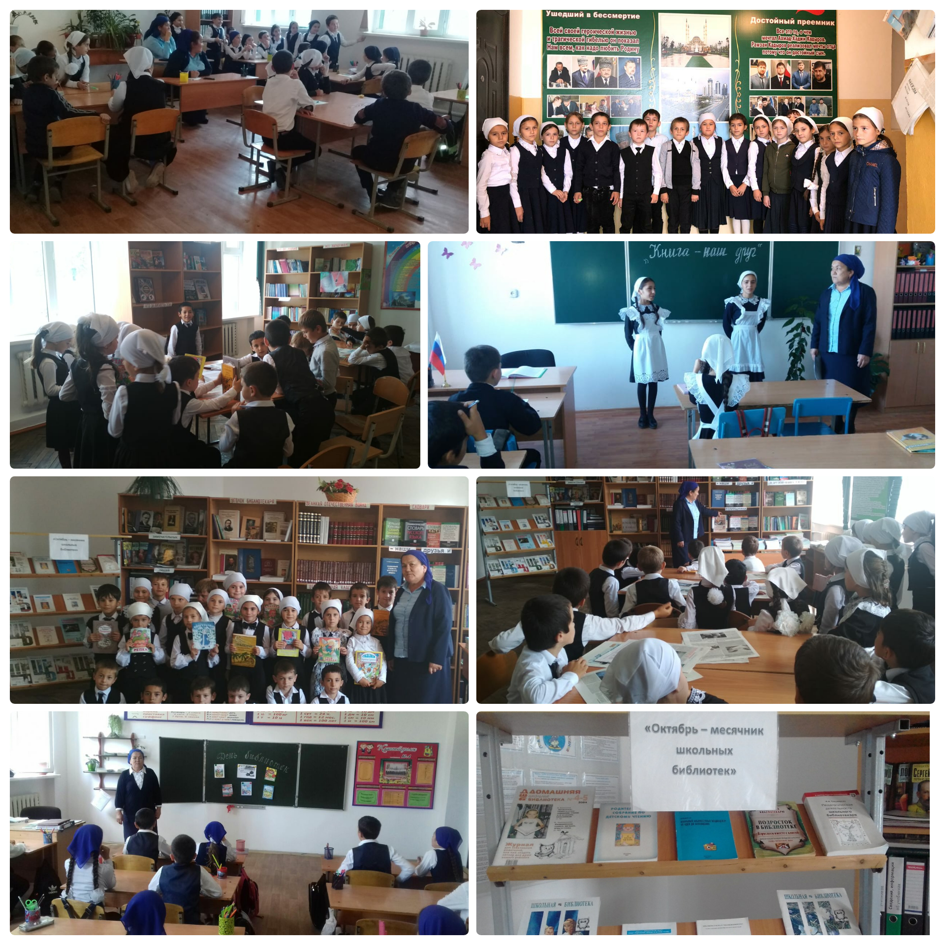 - экскурсия в сельскую библиотеку. Вместе с учащимися 2-3 классов посетили сельскую библиотеку. Ребята ознакомились с местоположением библиотеки, внутренним распорядком. Очень много узнали интересных материалов о Чеченских писателях.