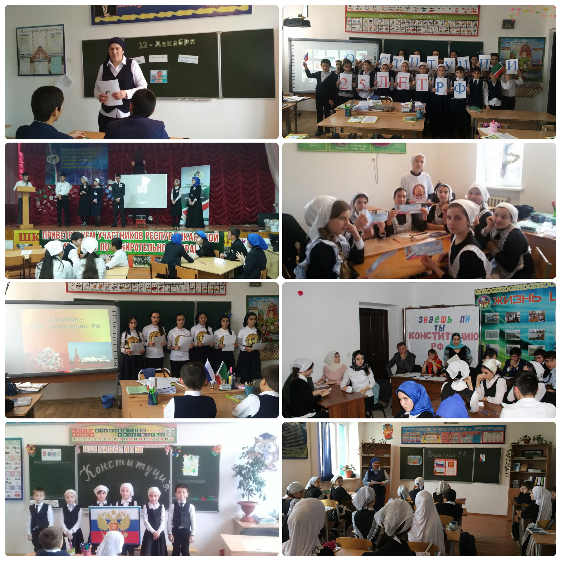 С 3 по 7декабря были проведены классные часы и беседы «Конституция и мы», «Я - избиратель», «Конституция-основной закон государства», посвященные Дню Конституции. На занятиях обучающиеся школы не только вспомнили, что такое Конституция, права и обязанности граждан, государственные символы нашей страны, но и посоревновались в знаниях. В каждом классе были определены победители, которые были отмечены грамотами.